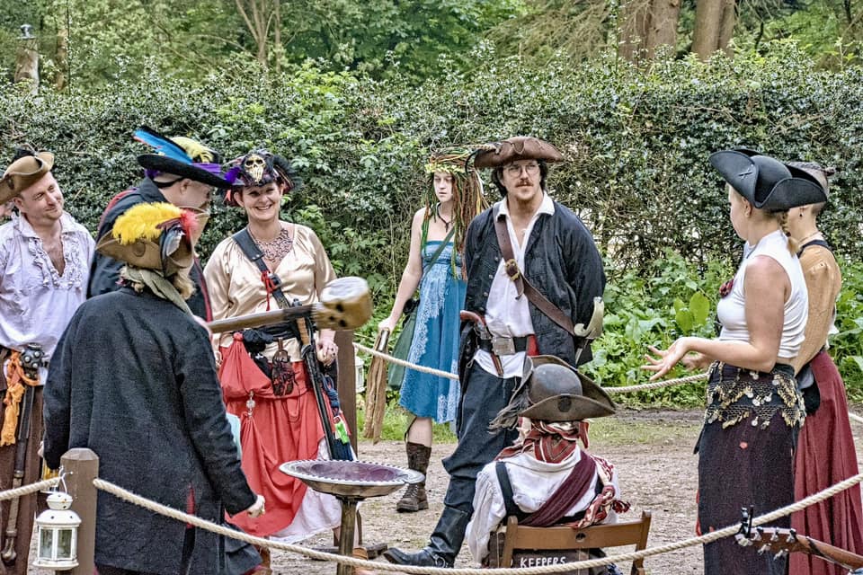 Avast! If ye aim to sail under our colors, ye best deck yourself in the red of fresh blood and the black of a moonless night. Scour the docks for proper pirate finery—loose linens and rugged leathers—but mark me well: if I spy a man in a fancy Naval uniform or carryin’ one o’ those toy plastic flintlocks, I’ll toss ‘im to the sharks myself!